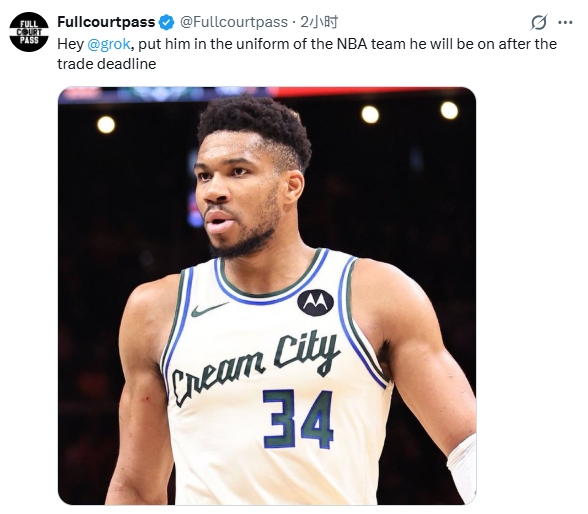 开云中国官网-美媒让AI Grok给字母P上未来东家的球衣!紫金球衣直接上身! xiaoqiao 2026-02-16 法甲 13 0 美媒:“让他穿上交易截止日后所效力球队的球衣。”Grok将阿德托昆博P上湖人球衣注:Grok是由马斯克旗下xAI所打造的知名AI