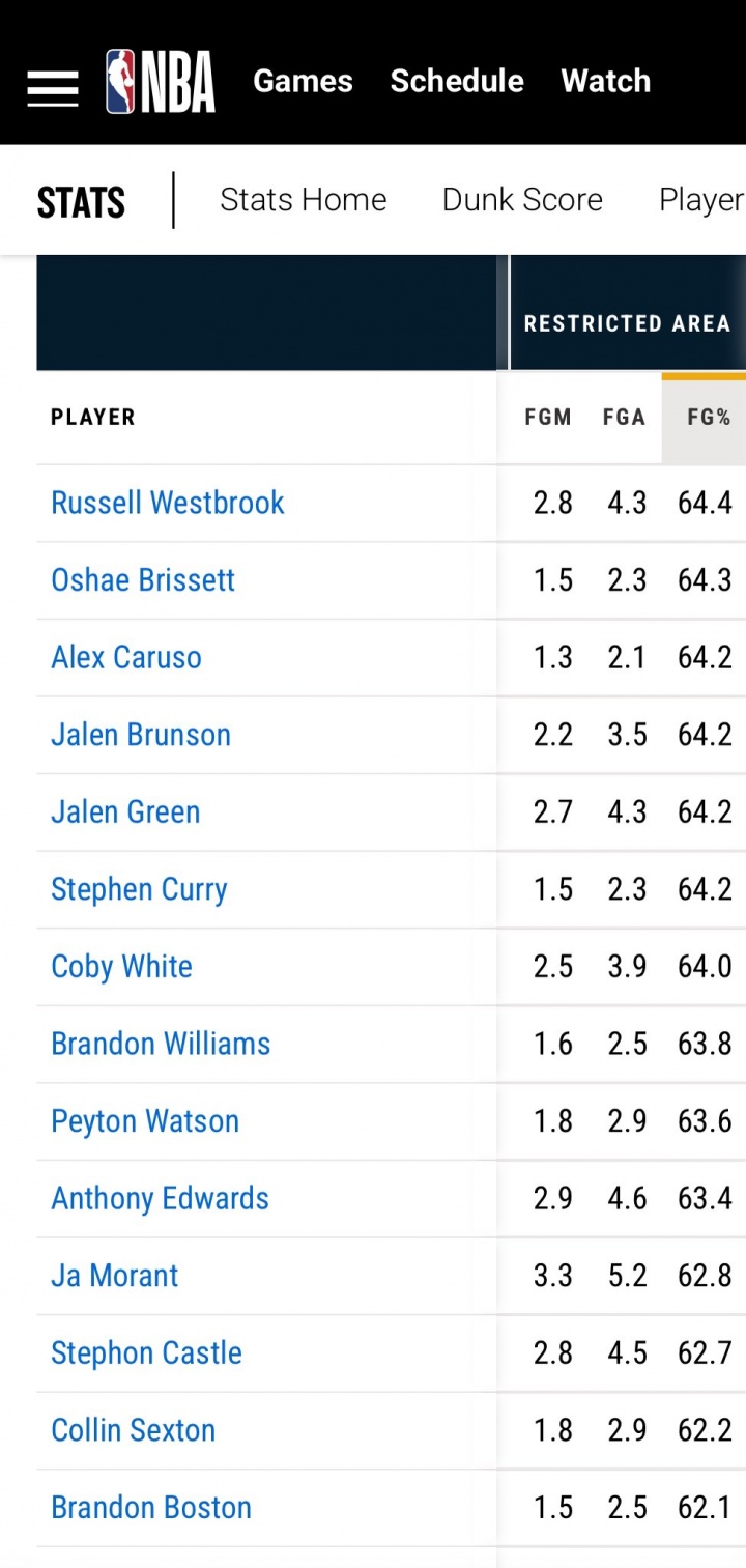 没想到!威少禁区命中率高于库里 莫兰特 布伦森 华子 杰伦-格林